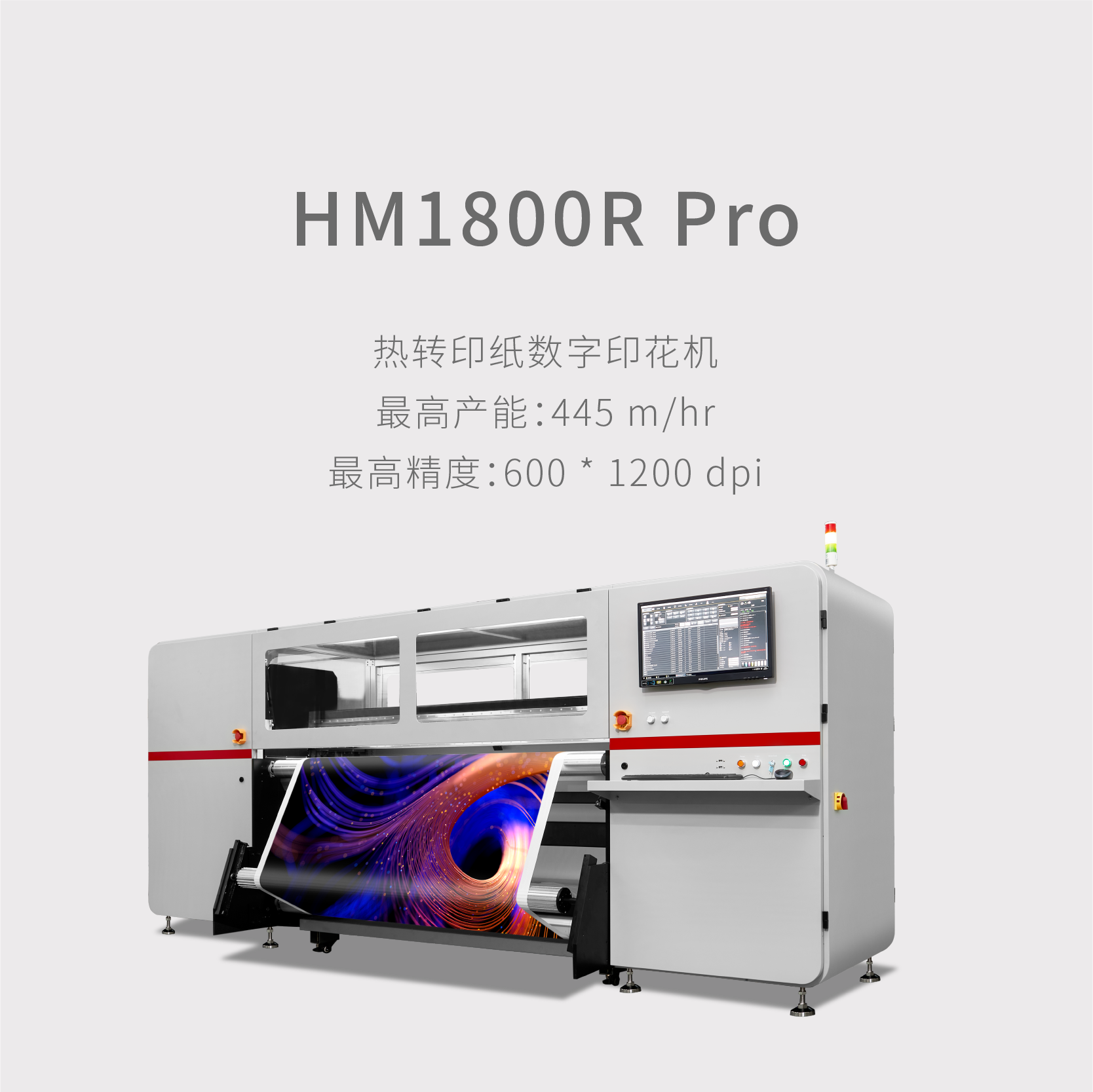 全新紡織印花導帶直噴機最高產(chǎn)能:1786㎡/hr 滿配64個工業(yè)級噴頭